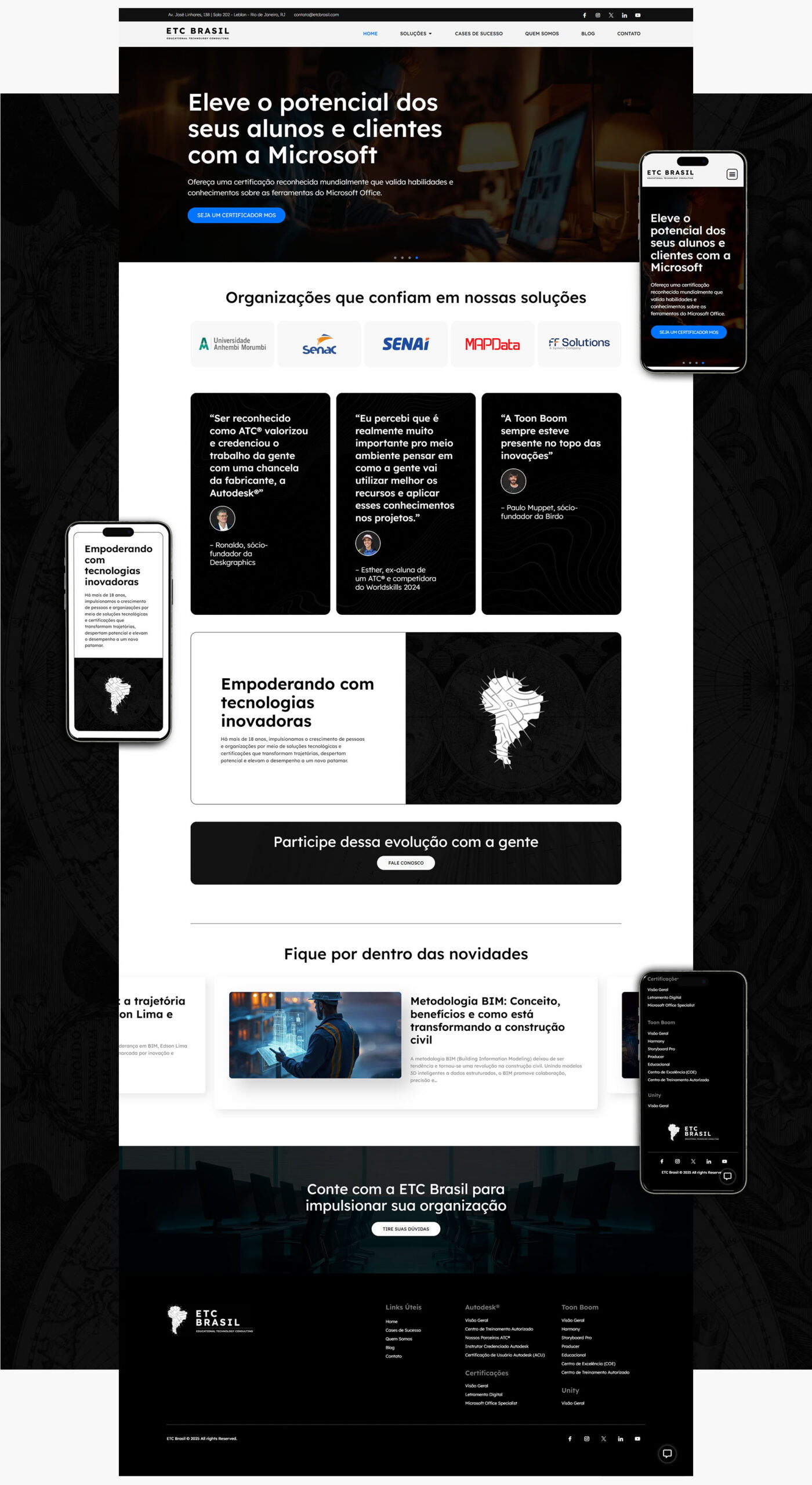 A estratégia da nova identidade da ETC Brasil nasce da convergência entre tecnologia, conhecimento e a essência humana da educação. Mais do que oferecer certificações e programas de ensino, a marca precisava comunicar seu verdadeiro papel: ser uma ponte entre o presente e o futuro, entre diferentes realidades e territórios.