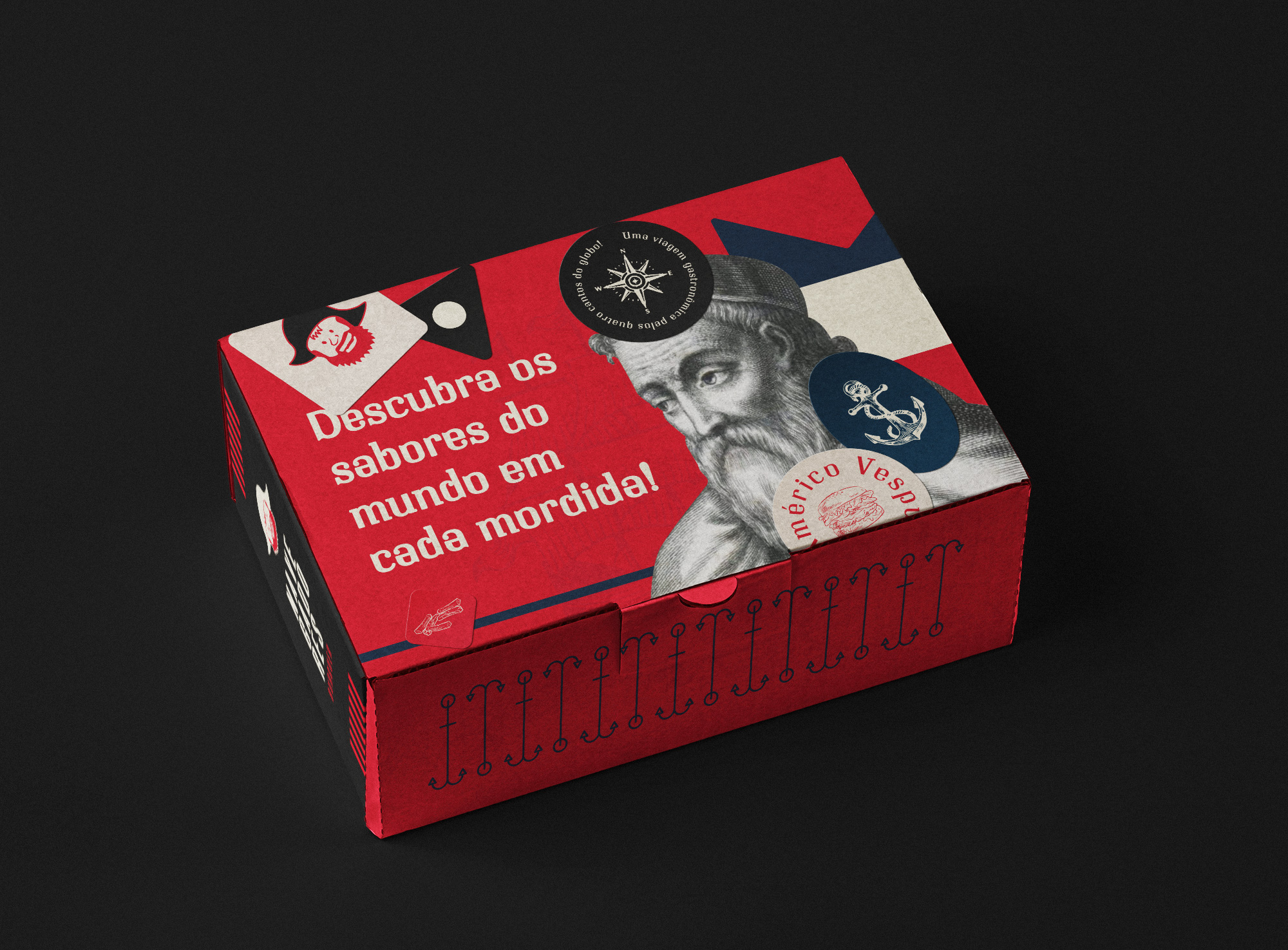 O processo de criação envolveu uma extensa pesquisa sobre os principais nomes das Grandes Navegações e os elementos visuais ligados ao mar e à exploração. A identidade foi construída passo a passo, a partir do conceito central até a criação de um sistema visual coerente, acessível e atrativo. Buscou-se equilibrar o lúdico com o histórico, respeitando o imaginário popular e reforçando o espírito da marca.